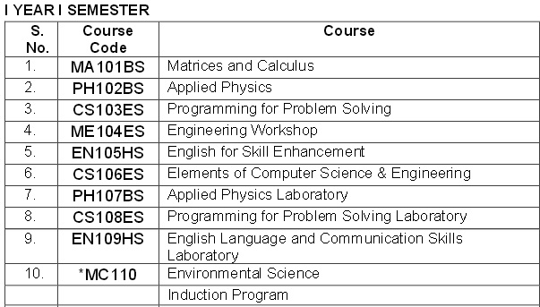 COURSE STRUCTURE, 4 YEAR SYLLABUS